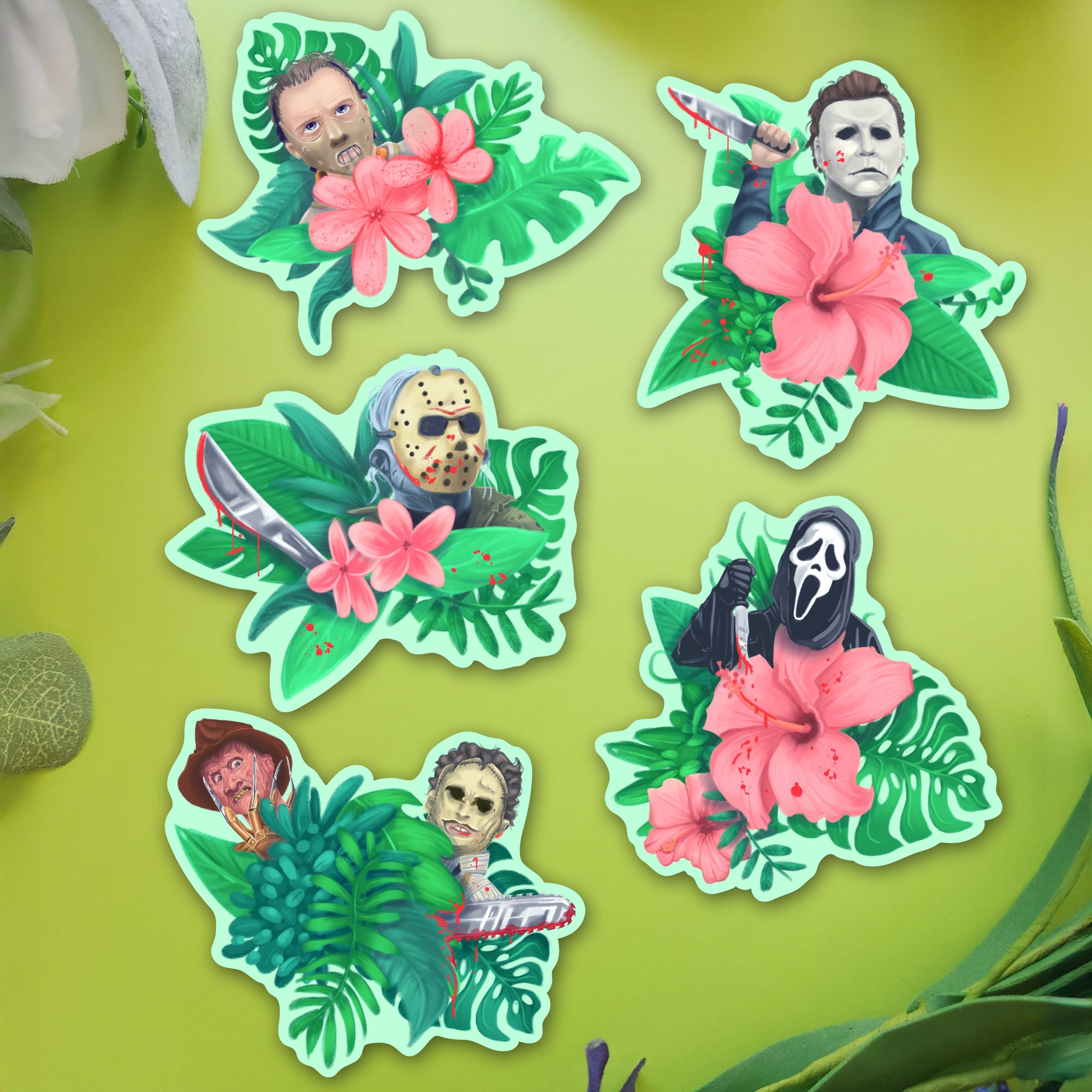 Trading the hockey mask for a hibiscus, and the bloody chainsaw for a beach chair. I channeled all the Summerween vibes with this Hawaiian shirt inspired set. Give your spooky collection a little summer vacation with these flower boys. They're killer!